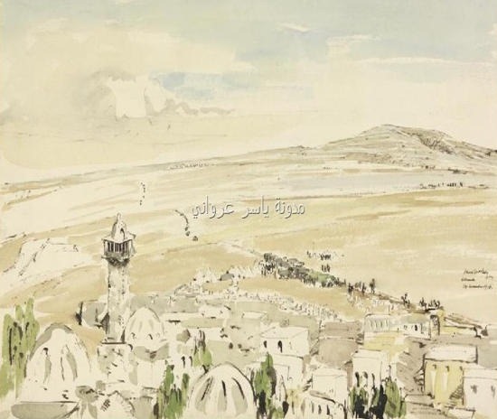 قام برسم هذه اللوحة الفنان (1883 – 1959) James McBey – أثناء تواجده في مدينة حماة عام 1918 م