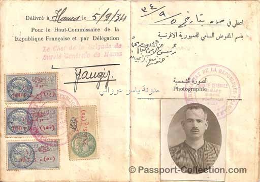 مجموعة صور نادرة لجواز سفر مواطن سوري من مدينة حماة