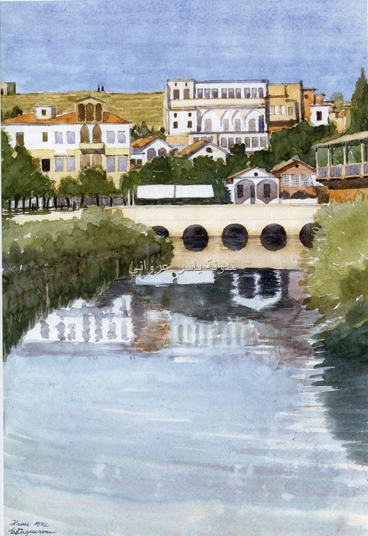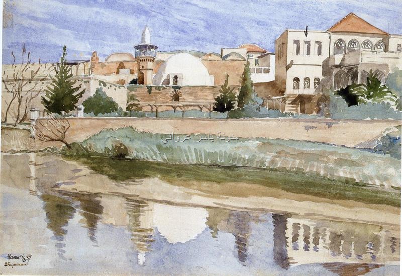 ناعورة الباز وجسر الكيلانية والزاوية القادرية وحمام السلطان وجزء من قلعة حماة