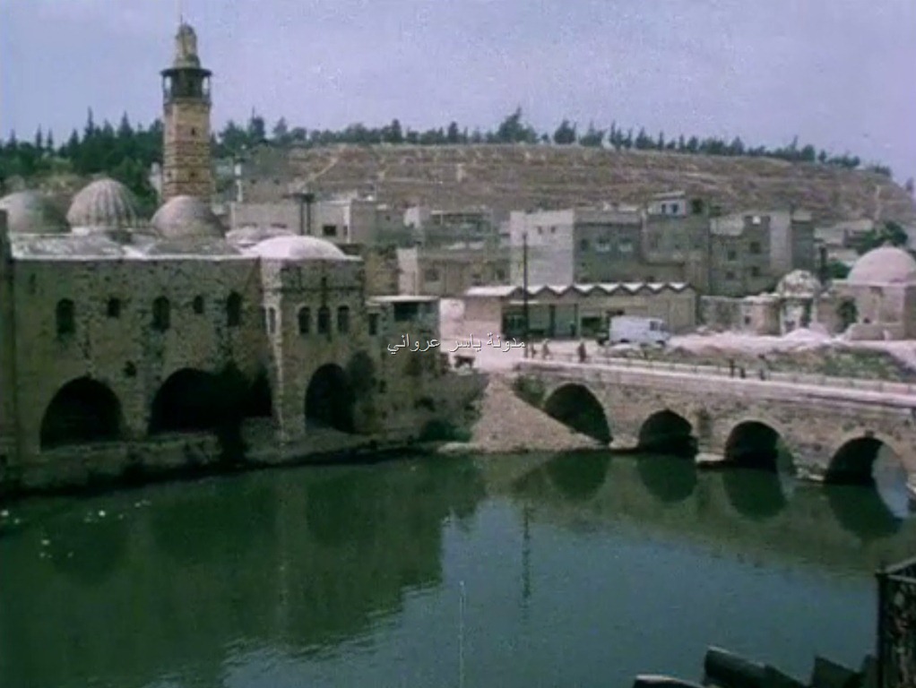 جسر الكيلانية – جامع النوري – حمام السلطان وفي عمق الصورة تظهر قلعة حماة الأثرية