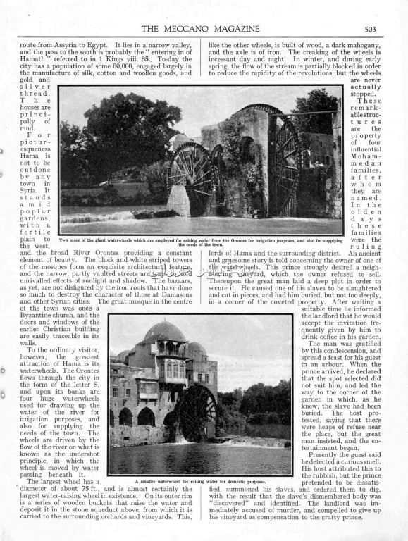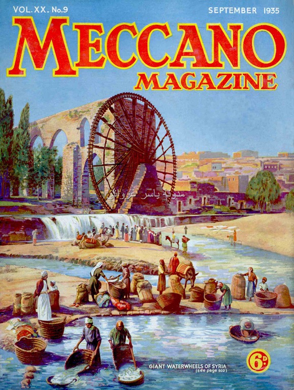 نفس مجلة ميكانو ولكن بعددها الصادر شهر 7 سنة 1936م في فرنسا نُشرت نفس الصوره على الغلاف ونفس المقال الذي تحدث عن نواعير مدينة حماة وأهميتها .