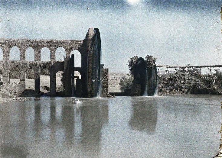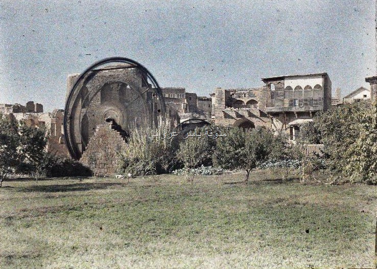 مجموعة صور جميلة بالألوان لحي الزنبقي وقصر العظم وناعورة الجسرية وناعورة المأمورية ونواعير البشريات يعود تاريخ التقاطها الى عشرينيات القرن العشرين .