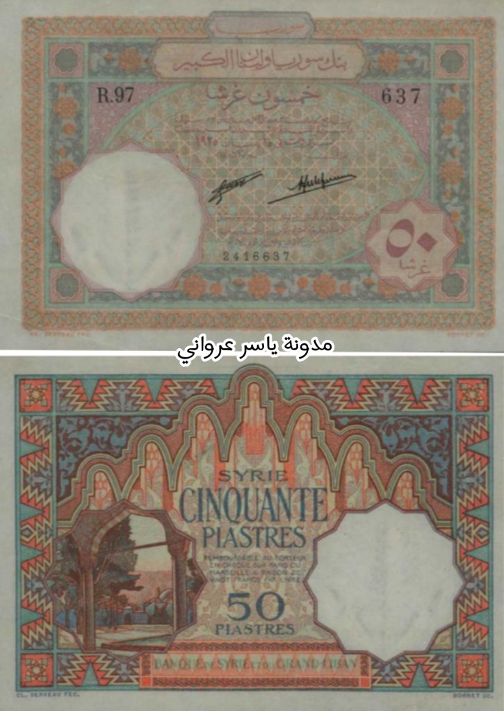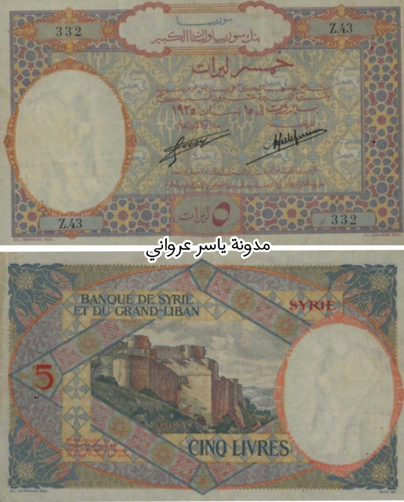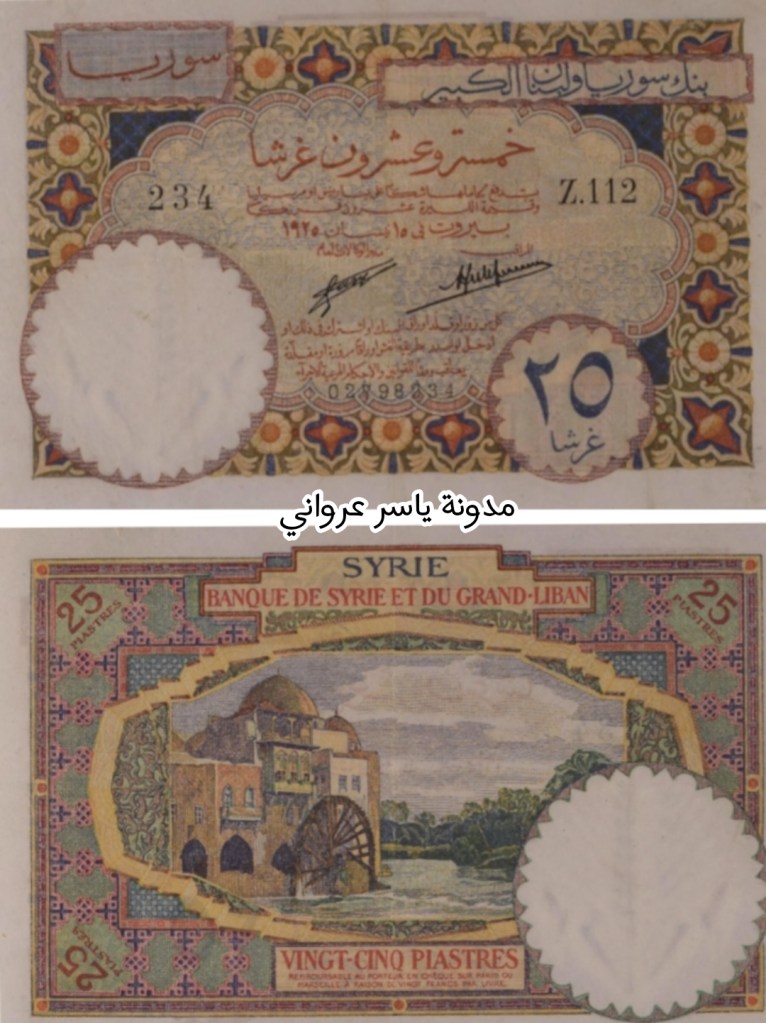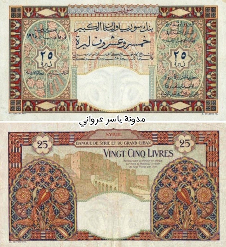 وفي عام 1925م تم اصدار ثماني فئات جديدة من العملة الورقية السورية ، اليكم صور هذه الفئات :