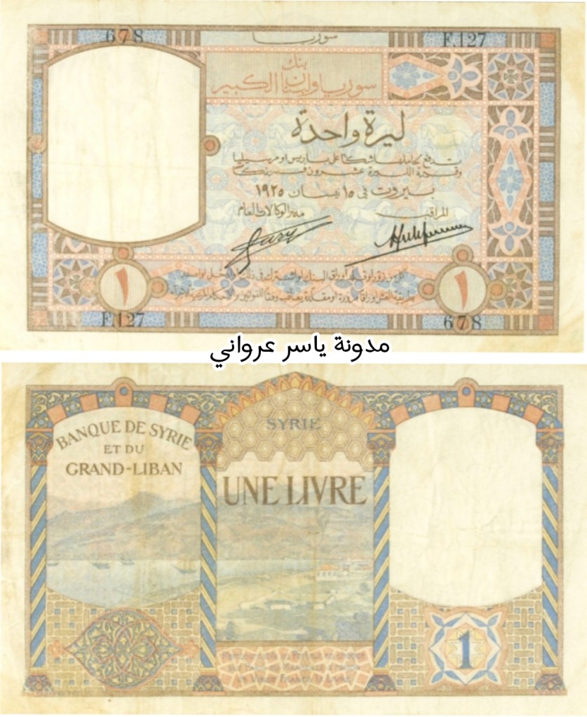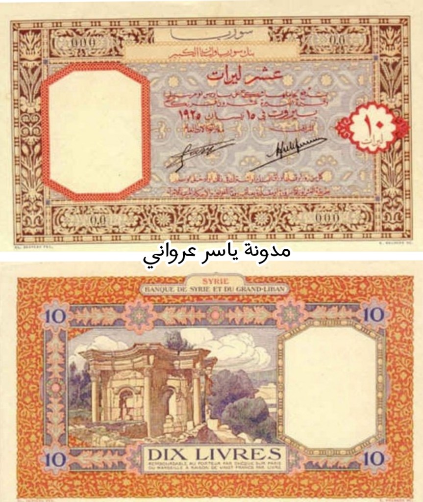 كانت جميع فئات العملات الورقية من اصدار ( البنك السوري ) وبقي التداول بها حتى عام 1924م في كل من سورية ولبنان .